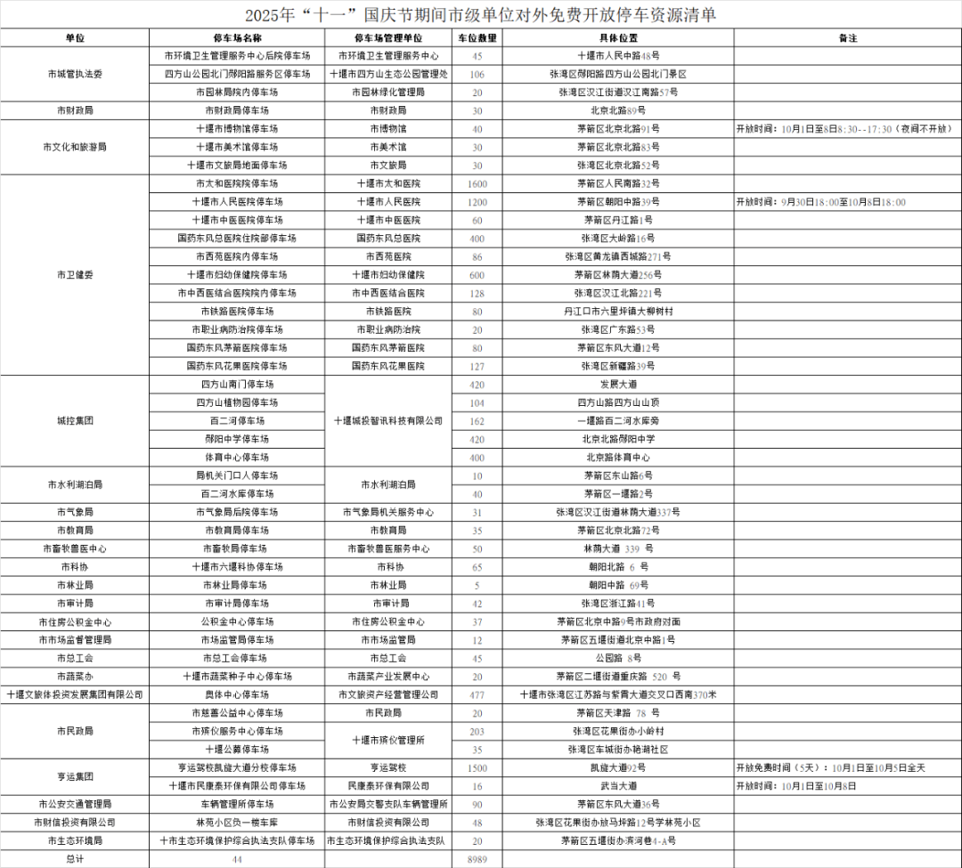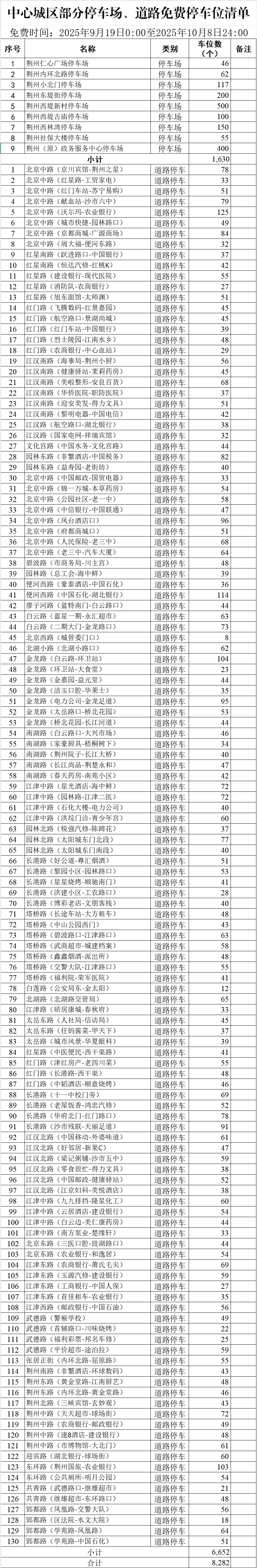 荆门中心城区机关事业单位和国有企业停车场,将在节日期间免费对外开放,共160个停车场、18026个停车位。