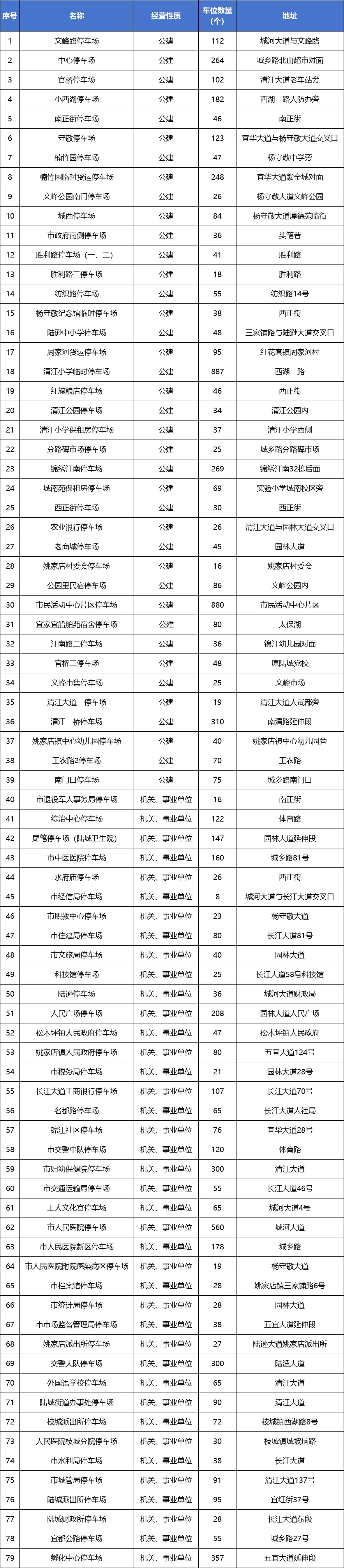 3. 全市国有平台公司投资建设的19个停车场2539个泊位,提供临停5-10元封顶或7折停车优惠;