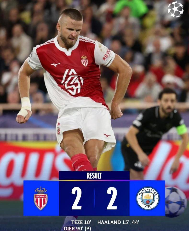 曼城本轮客场挑战法甲劲旅摩纳哥,这是双方时隔八年后再次在欧冠赛场相遇。2017年的1/8决赛,两队奉献了跌宕起伏的对攻大战,曼城首回合主场5-3取胜,次回合却1-3告负,最终以客场进球优势被淘汰。今天在路易斯二世球场,哈兰德再次打入两球,帮助曼城一度领先,然而比赛最后时刻,尼科-冈萨雷斯送出的点球,让到手的胜利变成了平局。
