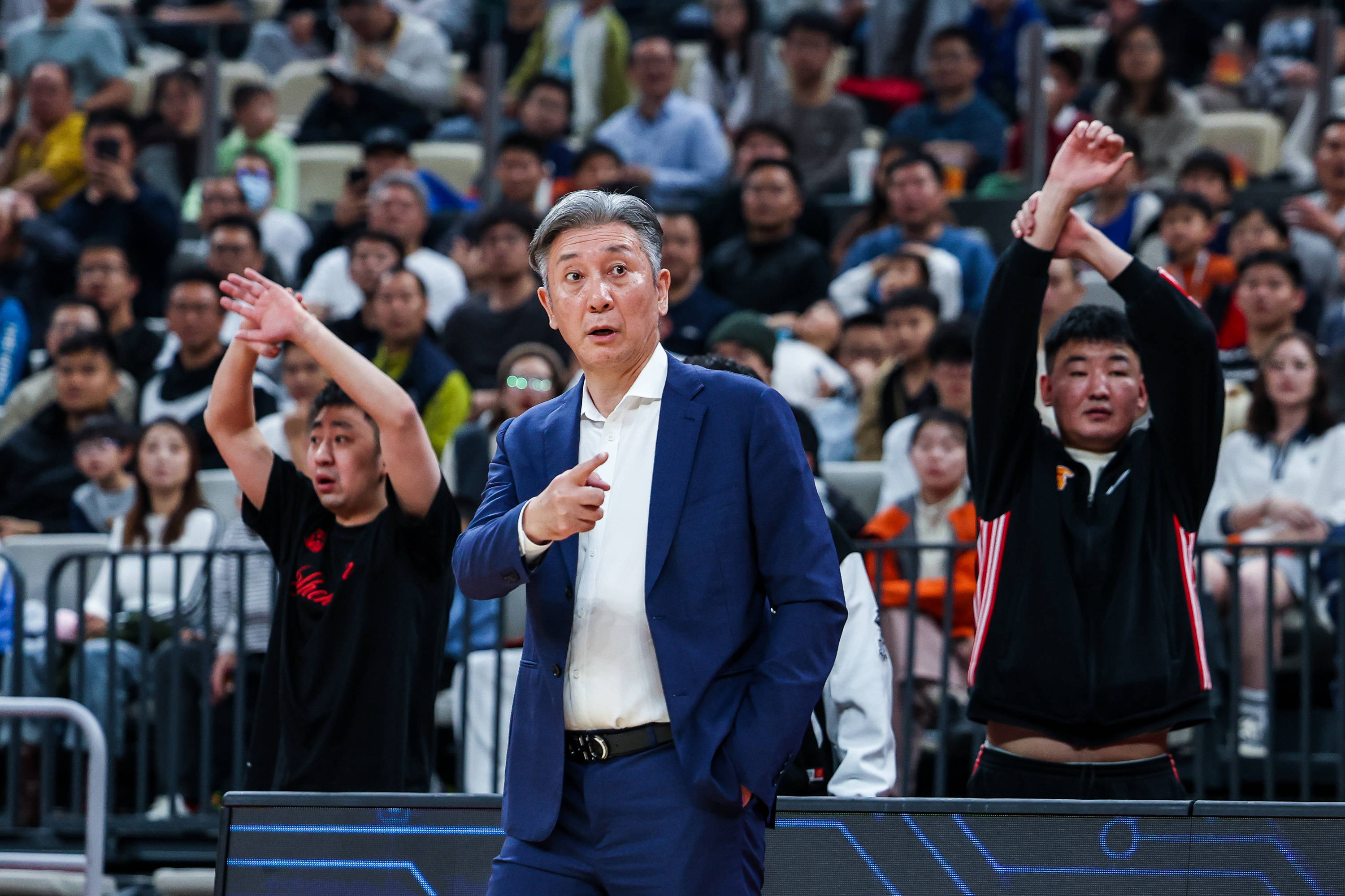 1月27日,福建晋江文旅队主教练凯撒在场边指挥。 新华社发(彭志刚摄)返回搜狐,查看更多