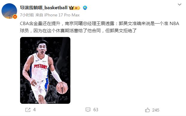 据同曦总经理王震在直播时透露,南京同曦锋线核心郭昊文在休赛期拒绝了一份来自NBA活塞队的合同报价,外界猜测郭昊文收到的很有可能是与曾凡博一样的E10合同,也不排除同曦总经理故意制造流量话题的可能性,因为除了王震,没有任何国内或国外媒体对NBA球队给郭昊文开出合同有过相关报道。且不论王震描述是否属实,同曦也没有任何理由放郭昊文离队,今夏林葳征战NCAA,曾繁日与刘东离队,利夫与肯德里克-戴维斯去到海外联赛打球,如果郭昊文再离开,同曦下赛季的排名恐怕要掉到联盟后几位了。返回搜狐,查看更多