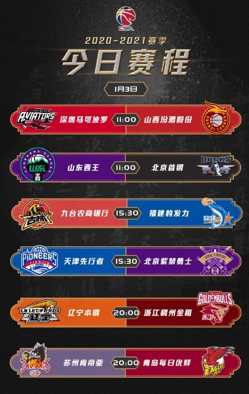2025-10-21CBA,中国男子篮球职业联赛,CBA赛程,CBA直播,CBA比分,CBA投注/提供CBA最新赛程、实时比分、球队阵容、球员数据及盘口分析,服务中文球迷与篮球数据爱好者,让你全面掌握CBA最新动态。1月3日,2020-21赛季CBA联赛常规赛第26轮继续进行,今日将进行6场比赛,分别是深圳VS山西,山东VS北京,吉林VS福建,天津VS北控,辽宁VS浙江,江苏肯帝亚VS青岛。腾讯体育将对比赛进行图文直播,以下是腾讯体育为您带来的前瞻