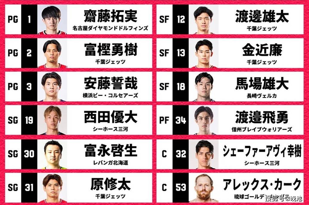 今晚对阵中国男篮的12人名单也已经确定。核心归化球员霍金森意外落选,新帅桶谷大启用的嫡系是另一名归化球员、36岁老将53-阿莱克斯·科克。其他11人为:3-安藤誓哉,2-富坚勇树,31-原修太,前NBA球员12-渡边雄太,1-齐藤拓実,18-马场雄大,32-幸树,34-渡边飞勇,19-西田优大,30-富永启生,13-金近廉。